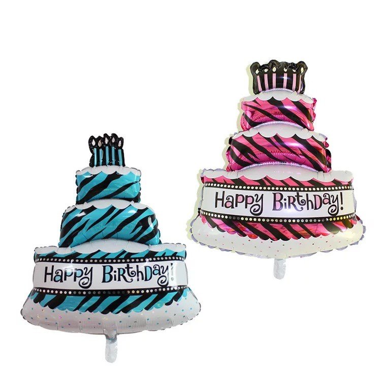 存在感抜群のゼブラ柄HappyBirthdayケーキ風船 サプライズにもおすすめです。