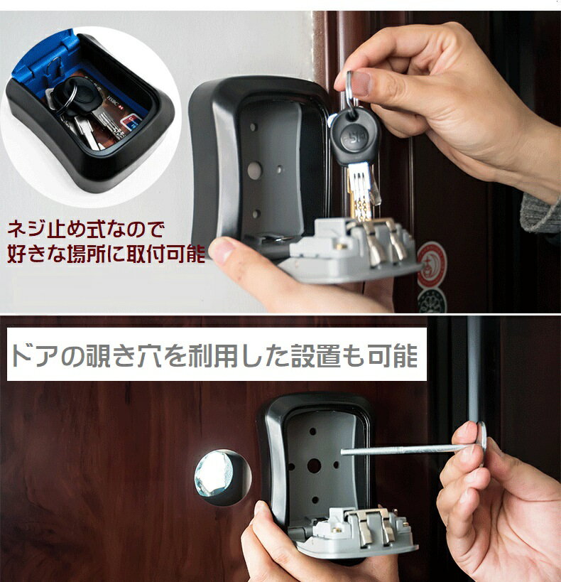 商品サイズ:117×86×40mm 内寸:90×65×30mm 付属品:固定用ネジ×4注:暗証番号設定後は念の為、鍵等を入れる前に必ず開錠・開閉の確認を行ってからご使用 下さい。